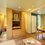 Rummen har bekvämligheter som te-/kaffebryggare, samt TV med flera kanaler för gästernas underhållning. Dessutom erbjuder hotellet Center Parcs De Kempervennen Eindhoven vattenkokare, kylskåp och spishäll i rummen. Hotellrummen erbjuder utsikt över sjön.